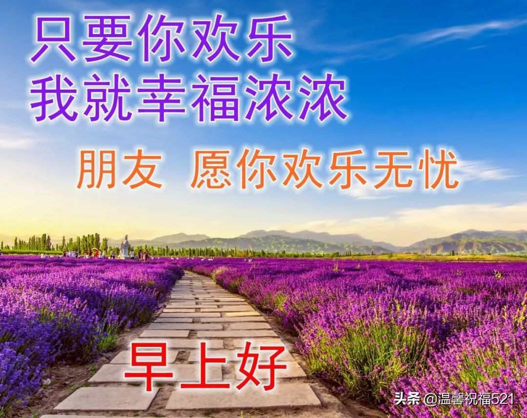 2、有一种思念让天涯不再遥远,有一种牵挂让朋友不再孤单,早安!我把愉快的心情带给你,把美好的幸福分给你,把甜蜜的日子寄给你,把衷心的祝福送给你。轻轻地一声祝福:祝你们幸福、快乐!早安!